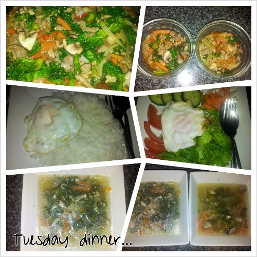 ไข่เจียวผัดผักแคล Kales พอดีอยากทาน ไข่เจียวผัดชะอม รสชาตไปกันได้นะ ตามด้วยไอศครีมอร่อยมาก อิ่มมมม
